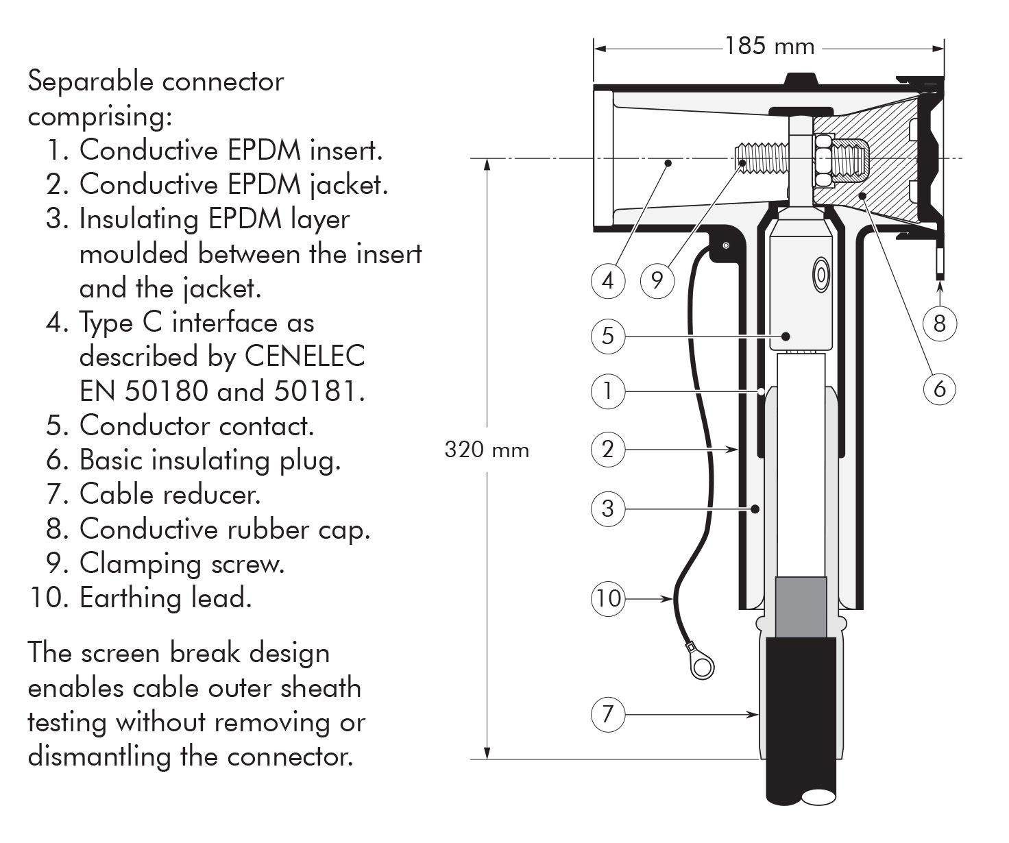 - Each separable connector is tested for AC withstand and partial discharge prior to leaving the factory.