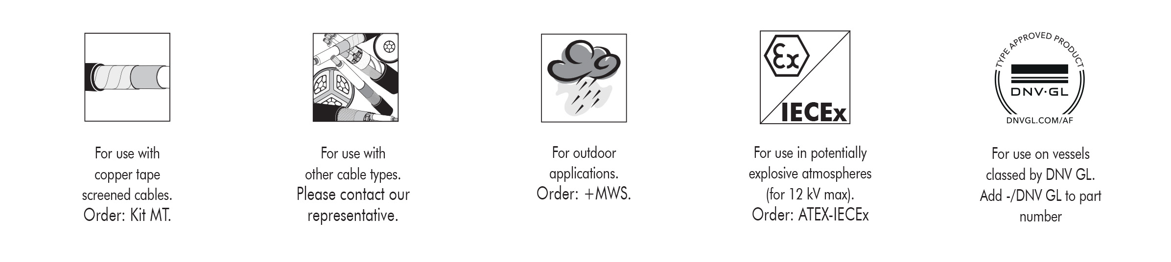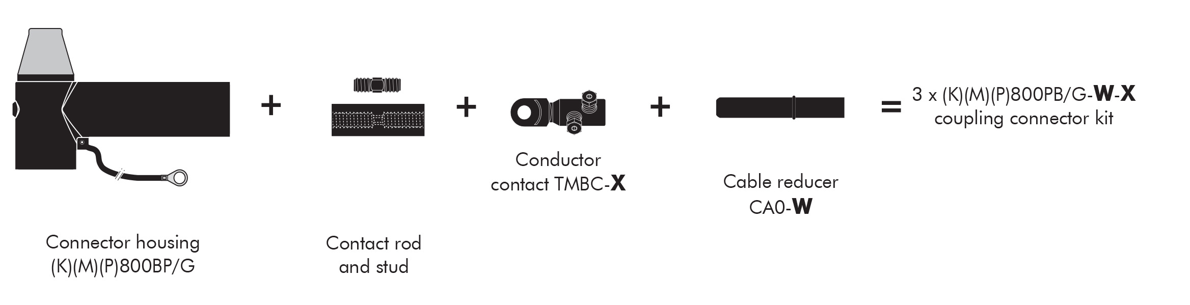 - (K) / (M) / (P) correspond respectively to connectors compatible for 24 kV / 36 kV / 42 kV voltages.