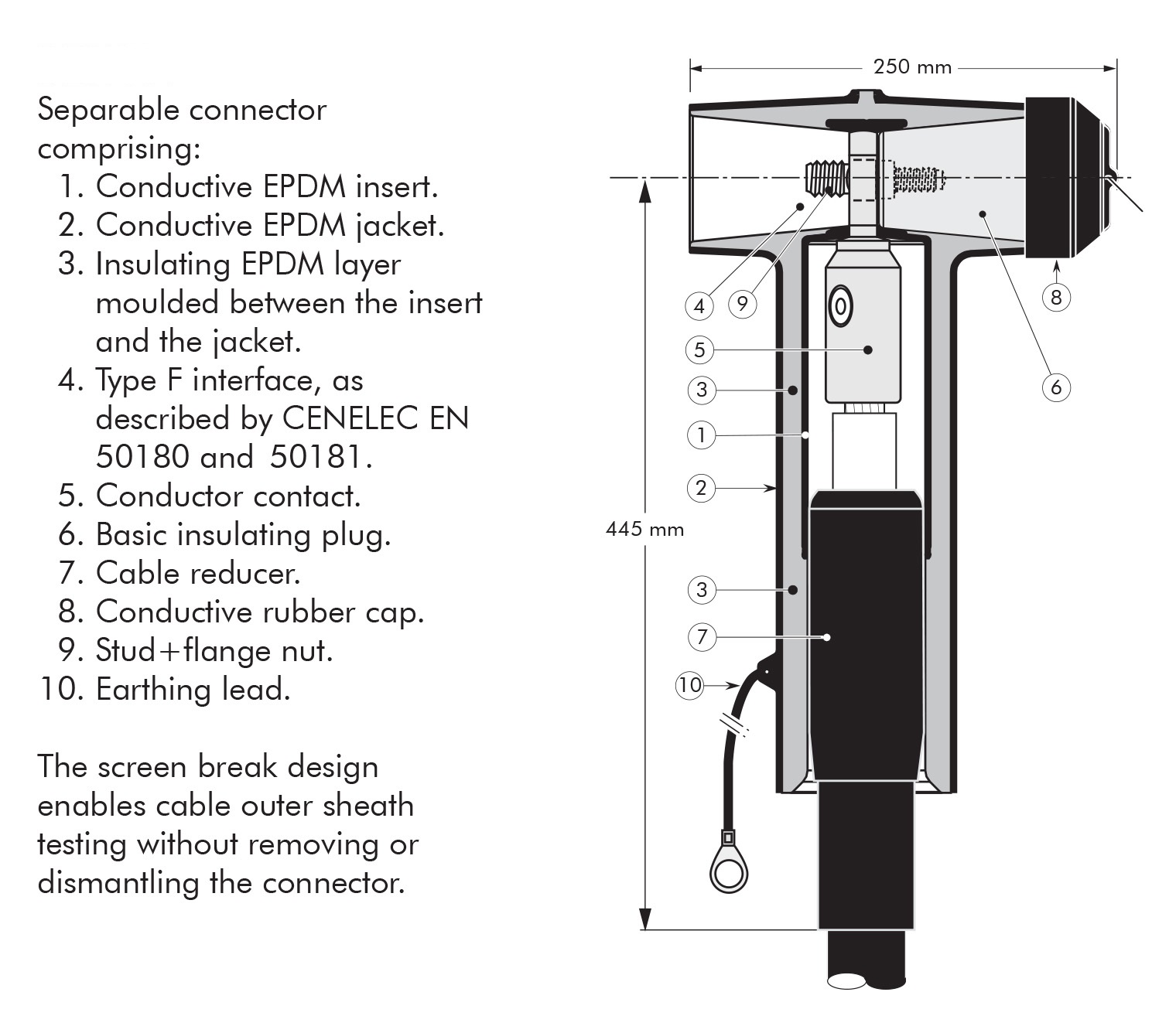 - Safe & reliable: with their slip-on technology, EUROMOLD®’s separable connectors are safe to install. Each separable connector is made with high quality components in Europe and individually tested before leaving the plant, ensuring a reliable connection and high-quality product.