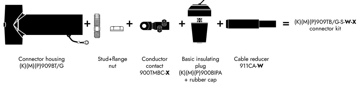 - (K) / (M) / (P) correspond respectively to connectors compatible for 24 kV / 36 kV / 42 kV voltages.